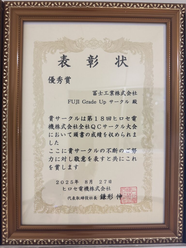 この度、第18回 ヒロセ電機株式会社様QCサークル大会に参加し、見事「優秀賞」を受賞しました。
